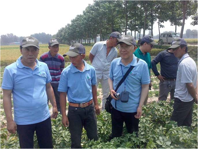 會場上,當?shù)剞r(nóng)牧業(yè)局副局長、糧食局局長就此次觀摩會的開展做了重要講話。民豐種業(yè)副總經(jīng)理張文昌介紹了公司基本情況、2105年馬鈴薯行業(yè)發(fā)展狀況及優(yōu)質(zhì)馬鈴薯種薯選擇等內(nèi)容;民豐種業(yè)質(zhì)量技術(shù)中心孟正平老師就馬鈴薯種植技術(shù)要點及病蟲害防治做了深入詳細的講解。隨后,于田間觀摩現(xiàn)場,孟老師與當?shù)胤N植戶進行了現(xiàn)場互動及答疑,在此同時,我公司與當?shù)胤止苻r(nóng)業(yè)領(lǐng)導就當?shù)匚磥眈R鈴薯的發(fā)展與合作達成初步意向。